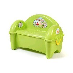 А что, он у вас не сидит? Ну, купите не скамейку, а стульчик с ящиком внизу, все равно же место экономит.