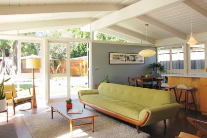 С тем, чтобы воплотить дух 60-х годов в интерьере вашего дома, не возникнет проблем, даже если не все предметы и материалы обстановки в нем будут в стиле ретро. Не обязательно слепо следовать всем принципам построения тематического интерьера, можно позаимствовать некоторые черты, например, приобрести соответствующую мебель, расставить графические акценты на поверхностях.